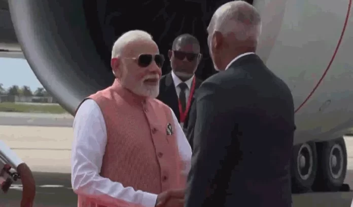 కాక‌తీయ‌, న్యూఢిల్లీ (జూలై 25) : ప్రధాన మంత్రి నరేంద్ర మోదీ విదేవీ పర్యటన లో భాగంగా ప్రధాని శుక్రవారం మాల్దీవుల పర్యటనకు వెళ్లారు. రెండు రోజులపాటూ (25-26) మాల్దీవ్స్‌లో మోదీ పర్యటించనున్నారు. శుక్రవారం ఉదయం మాలే చేరుకున్నారు. ఈ సందర్భంగా ప్రధాని మోదీకి మాల్దీవుల అధ్యక్షుడు మొహమ్మద్‌ మొయిజు ఘనంగా స్వాగతం పలికారు. ఈ సందర్భంగా మాలే ఎయిర్‌పోర్ట్‌లో వందేమాతరం, భారత్‌ మాతాకీ జై వంటి నినాదాలు వినిపించాయి. అధ్యక్షుడు డాక్టర్ మొహమ్మద్ మొయిజు ఆహ్వానం మేరకు ప్రధానమంత్రి మోదీ మాల్దీవుల పర్యటనకు వెళ్లారు. ఆ దేశంలో మోదీ పర్యటించడం ఇది మూడోసారి. మొయిజు మాల్దీవులలో అధికారం చేపట్టిన తర్వాత ఒక విదేశీ దేశాధినేత తొలి పర్యటన ఇదే కావడం విశేషం.
