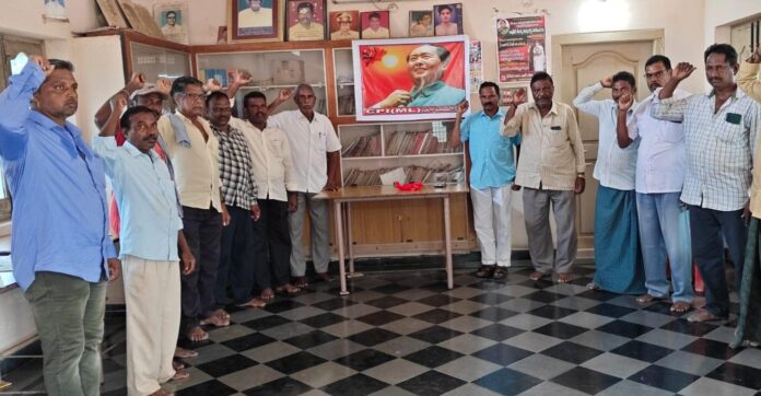 కాకతీయ, బయ్యారం: మండలం కేంద్రంలోని గడ్డం వెంకట్రామయ్య విజ్ఞాన కేంద్రంలో మావో 49వ వర్ధంతి సందర్భంగా విప్లవ జోహార్లు అర్పించారు. ఈ కార్యక్రమంలో సీపీఐ ఎంఎల్ న్యూడెమోక్రసీ పార్టీ జిల్లా కార్యదర్శి గౌని ఐలయ్య మాట్లాడారు. మావో నాయకత్వంలో 1949లో రిపబ్లిక్ చైనా కమ్యూనిస్టు పార్టీని నిర్మించి, షాంకైషేక్,కుమింగ్ టాప్ భూస్వామ్యవాదులకు వ్యతిరేకంగా సన్ యెట్ సేన్ కూటమి ఏర్పాటు చేశారన్నారు. గెరిల్లా సైన్యం ద్వారా రెండు లక్షల సైన్యం, ఎర్రసైన్యంతో లాంగ్ మార్చ్ చేసి సామ్రాజ్యవాదుల నుండి దేశాన్ని విముక్తి గావించాడని ఆయన అన్నారు. కామ్రేడ్ మావో చైనాలో భూ పంపిణీ చేసి వ్యవసాయాన్ని మరింతగా అభివృద్ధి చేశారని, ప్రజల ఆర్థిక స్థితిగతులను మెరుగుపరచారన్నారు. కార్యక్రమంలో రామగిరి బిక్షం, తుడుం వీరభద్రం, నేతకాని రాకేష్, ఏపూరి వీరభద్రం, కొదమూరు నాగేశ్వరరావు, రమేష్, ఐలయ్య, శేషు, శంకర్, మురళి, సుధాకర్, యుగంధర్ తదితరులు పాల్గొన్నారు.
