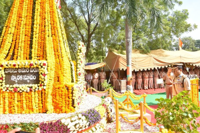 కాకతీయ, కరీంనగర్ బ్యూరో : ఉమ్మడి కరీంనగర్ జిల్లా పరిధిలో పోలీస్ అమరవీరుల దినోత్సవాన్ని(ఫ్లాగ్ డే) ఘనంగా నిర్వహించారు. విధి నిర్వహణలో ప్రాణాలు అర్పించిన అమరవీరులకు నివాళులర్పించారు. రామగుండం పోలీస్ కమిషనరేట్ కార్యాలయంలో జరిగిన పోలీస్ అమరవీరుల దినోత్సవ కార్యక్రమంలో కమిషనర్ అంబర్ కిషోర్ ఝా, కలెక్టర్ కుమార్ దీపక్, డీసీపీ కరుణాకర్ తదితరులు పాల్గొన్నారు. గత ఏడాది నుండి ఇప్పటివరకు విధి నిర్వహణలో మరణించిన 191 మంది అమరవీరుల పేర్లను అడిషనల్ డీసీపీ శ్రీనివాస్ చదివి వినిపించారు. శాంతిభద్రతల పరిరక్షణ కై ప్రాణత్యాగాలు చేసిన పోలీసులు ప్రజల గుండెల్లో నిలిచిపోతారని, వారి కుటుంబాలకు ఎల్లవేళలా అండగా ఉంటామని కమిషనర్ తెలిపారు.