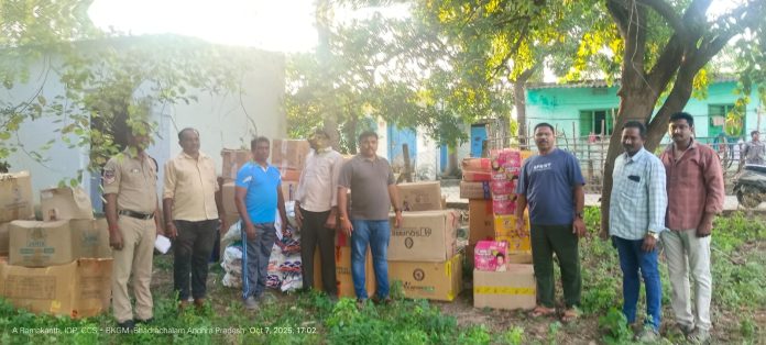 కాకతీయ, కొత్తగూడెం రూరల్: భద్రాచలంలో దీపావళి టపాసుల అక్రమ స్థావరాలపై టాస్క్ ఫోర్స్, భద్రాచలం పోలీసుల సంయుక్త ఆధ్వర్యంలో బుధవారం దాడులు నిర్వహించినట్లు సీఐ నాగరాజు తెలిపారు. జిల్లా ఎస్పీ రోహిత్ రాజు ఆదేశాల మేరకు దీపావళి టపాసుల అక్రమ నిల్వలపై జిల్లా టాస్క్ఫోర్స్, భద్రాచలం పోలీసులు సంయుక్తంగా దాడులను నిర్వహించారు. భద్రాచలం పట్టణంలోని భగవాన్ దాస్ కాలనీ, ఇండస్ట్రీయల్ ఏరియా, గ్యాస్ గొడౌన్ ఏరియాలలో జనావాస ప్రాంతాలలో ప్రభుత్వ అనుమతులు లేకుండా అక్రమంగా దీపావళి మందులను నిల్వ ఉంచిన నలుగురు వ్యక్తులపై భద్రాచలం పోలీస్ స్టేషన్లో కేసు నమోదు చేయడమైందని పేర్కొన్నారు.