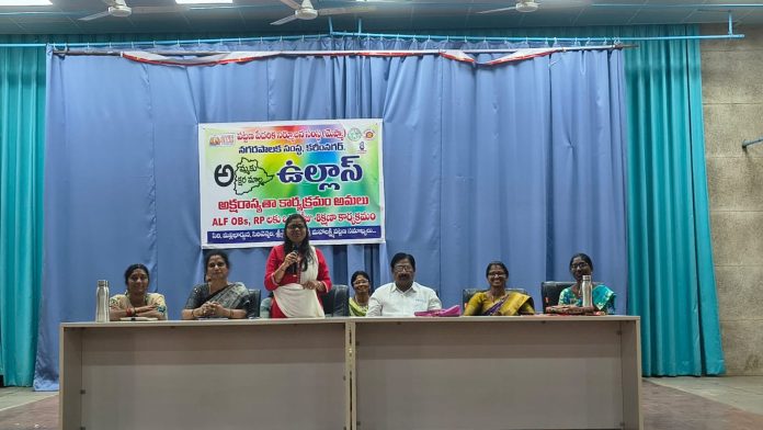 కాకతీయ, కరీంనగర్ : నగరపాలక సంస్థ కరీంనగర్ పరిధిలోని కళాభారతిలో ఉల్లాస్ కార్యక్రమంలో భాగంగా ‘అమ్మకు అక్షరమాల’ శిక్షణ కార్యక్రమాన్ని మంగళవారం ఉత్సాహంగా నిర్వహించారు.