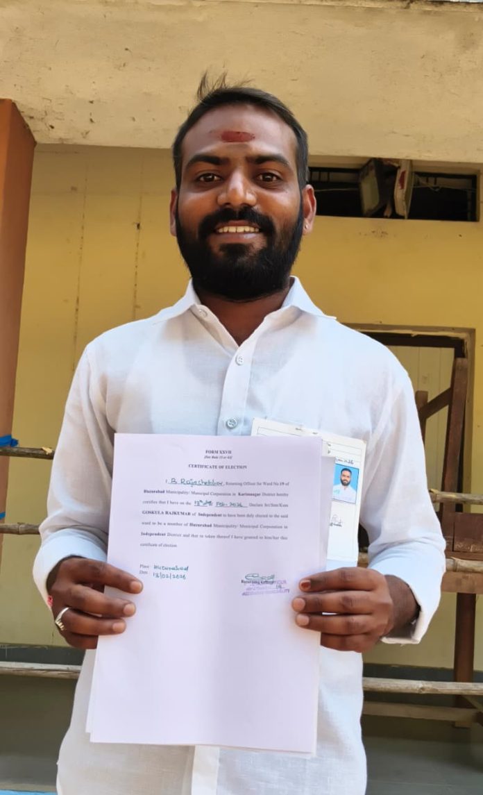 కాకతీయ, హుజురాబాద్ : హుజూరాబాద్ మున్సిపాలిటీలో మొత్తం 30 వార్డులు ఉండగా, ఈ ఎన్నికల్లో ప్రధాన పార్టీల మధ్యే పోటీ కేంద్రీకృతమైంది. ఎక్కువ వార్డుల్లో కాంగ్రెస్, బీఆర్ఎస్, బీజేపీ అభ్యర్థుల మధ్య హోరాహోరీ పోరు సాగింది. అయితే ఈ రాజకీయ సమీకరణాలకు భిన్నంగా 19వ వార్డులో మాత్రం స్వతంత్ర అభ్యర్థి గోస్కుల రాజ్కుమార్ ఘన విజయం సాధించడం ప్రత్యేకతగా నిలిచింది.