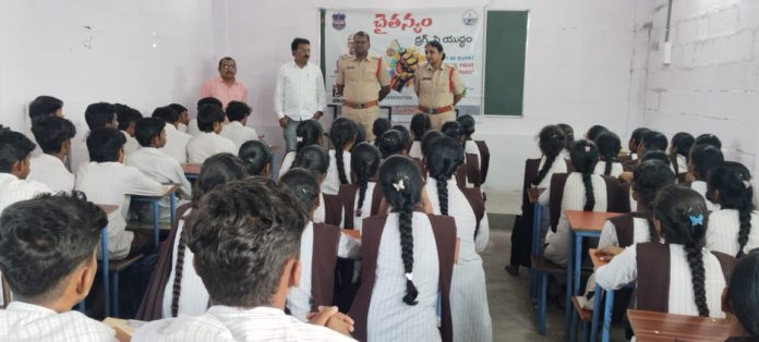 కాకతీయ, జూలూరుపాడు : భద్రాద్రి కొత్తగూడెం జిల్లా పోలీస్ అధికారి రోహిత్ రాజు ఆదేశాల మేరకు జూలూరుపాడు మండల కేంద్రంలోనీ సాధన జూనియర్ కాలేజీలో చైతన్యం యాంటీ డ్రగ్స్ అవేర్నెస్ కార్యక్రమం చేపట్టడం నిర్వహించారు. ఈ కార్యక్రమంలో జూలూరుపాడు సర్కిల్ ఇన్స్పెక్టర్ శ్రీలక్ష్మి, ఎస్సై బి.రవి పాల్గొన్నారు.ఈ సందర్భంగా సీఐ శ్రీలక్ష్మి మాట్లాడుతూ నేటి బాలలే రేపటి భావిభారత పౌరులని విద్యార్థి దశలోనే పిల్లలను మంచి మార్గంలో నడిపించాలని మన చుట్టూ జరుగుతున్నటువంటి కొన్ని అనైతిక కార్యక్రమాలపై విద్యార్థులకు అవగాహన కల్పించి యువత డ్రగ్స్ గంజాయి లాంటి మాదకద్రవ్యాలకు అలవాటు పడకుండా కాపాడుకోవాల్సిన బాధ్యత మన అందరిదీ అని అన్నారు, అనంతరం ఎస్సై బి.రవి మాట్లాడుతూ ఒకప్పుడు మహా నగరంలో వినిపించేటువంటి మాదకద్రవ్యాలు డ్రగ్స్, గంజాయి లాంటి చెడు వ్యసనాలకు అలవాటయ్యే యువత నేడు చాప కింద నీరు లాగా డ్రగ్స్ గంజాయి లాంటి పదార్థాలు నేడు పల్లెల్లోకి చేరుకున్నాయని, గంజాయి మాదకద్రవ్యాలను సులువుగా రవాణా చేసుకొని నేడు విద్యార్థులకు యువతకు చెడు వ్యసనాలకు అలవాటు చేస్తున్నారని ముఖ్యంగా ఇలాంటి కేసులు ఎన్నో మా దృష్టికి వచ్చాయని గంజాయి అలవాటు పడిన వ్యక్తి ఎంతటి నేరానికైనా వెనుకాడడని ఆ మత్తులో ఏమి చేస్తున్నామో అర్థం కాని పరిస్థితిలో ఉంటారని ఈ అలవాటున్న వ్యక్తి అనేక రోగాలకు బారిన పడతారని కాబట్టి యువకులు, విద్యార్థులు ఇలాంటి చెడు వ్యసనాలకు అలవాటు పడకుండా ఎల్లప్పుడూ మంచి మార్గంలోనే నడవాలని విద్యార్థులకు సూచించారు ఈ కార్యక్రమంలో కాలేజీ సిబ్బంది, నరసింహారావు మరియు పోలీస్ సిబ్బంది పాల్గొనడం జరిగినది.