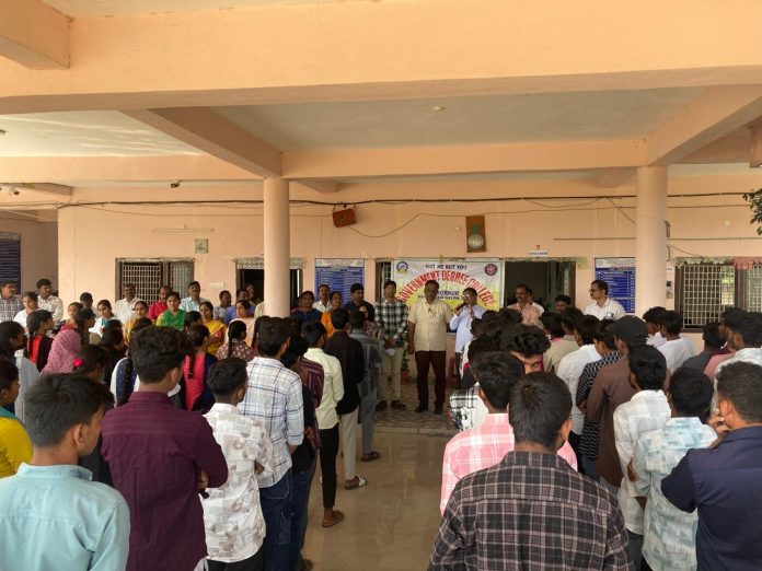 కాకతీయ, తొర్రూరు : తొర్రూరు డివిజన్ కేంద్రంలోని ప్రభుత్వ డిగ్రీ కళాశాలలో శుక్రవారం క్యాన్సర్ వ్యాధి నివారణపై అవగాహన కార్యక్రమాన్ని నిర్వహించారు. ఈ సందర్భంగా విద్యార్థినీ, విద్యార్థులతో క్యాన్సర్ నివారణపై ప్రతిజ్ఞ చేయించారు. కళాశాల ప్రిన్సిపల్ డాక్టర్ బి.రాములు మాట్లాడుతూ క్యాన్సర్ వంటి ప్రాణాంతక వ్యాధులు రాకుండా ముందస్తు జాగ్రత్తలు తీసుకోవాలని సూచించారు. పొగాకు, మద్యం వంటి అలవాట్లకు దూరంగా ఉండాలని, ఆరోగ్యకరమైన ఆహారాన్ని తీసుకుంటూ క్రమం తప్పని వ్యాయామం చేయాలని విద్యార్థులకు తెలిపారు. ఈ కార్యక్రమంలో కళాశాల వైస్ ప్రిన్సిపల్ డాక్టర్ శాంతికుమార్, ఎన్ఎస్ఎస్ ప్రోగ్రాం ఆఫీసర్లు డాక్టర్ సుజాత, డాక్టర్ వాల్యా నాయక్, టీఎస్కేసీ కోఆర్డినేటర్ డాక్టర్ సునీల్తో పాటు అధ్యాపకులు, విద్యార్థులు పాల్గొన్నారు.