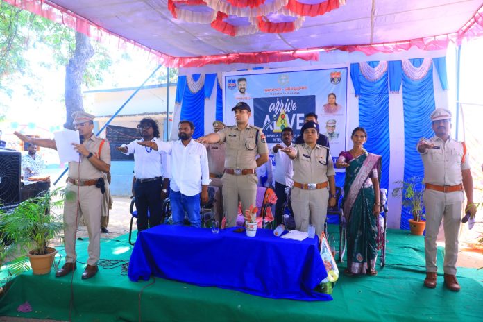 కాకతీయ, శంకరపట్నం : మండలంలోని మొలంగూర్ గ్రామంలో సోమవారం ప్రజా పాలన–ప్రగతి ప్రణాళికలో భాగంగా కేశవపట్నం పోలీసుల ఆధ్వర్యంలో “అరైవ్ అలైవ్” రోడ్ సేఫ్టీ అవగాహన కార్యక్రమాన్ని విస్తృతంగా నిర్వహించారు. ఈ కార్యక్రమానికి కరీంనగర్ పోలీస్ కమిషనర్ గౌస్ ఆలం ముఖ్య అతిథిగా హాజరయ్యారు. స్థానిక ప్రజలు, వాహనదారులు, ఆటో డ్రైవర్లు పెద్ద సంఖ్యలో పాల్గొన్నారు. ఈ సందర్భంగా ఆయన మాట్లాడుతూ “అరైవ్ అంటే వెళ్లడం కాదు… ఆలైవ్ అంటే సురక్షితంగా తిరిగి రావడం” అని పేర్కొన్నారు. రోడ్డు ప్రమాదాల నివారణలో ప్రతి ఒక్కరి బాధ్యత కీలకమని తెలిపారు. అతివేగం, మద్యం సేవించి వాహనం నడపడం, ట్రాఫిక్ నియమాలను పాటించకపోవడం వల్లే ఎక్కువ ప్రమాదాలు జరుగుతున్నాయని చెప్పారు. హెల్మెట్ ధరించడం, సీట్ బెల్ట్ వినియోగం, ట్రాఫిక్ సిగ్నల్స్ పాటించడం వంటి అంశాలపై ప్రత్యేకంగా అవగాహన కల్పించారు. డ్రైవర్లతో కలిసి ట్రాఫిక్ నియమాలను కచ్చితంగా పాటిస్తామని ప్రతిజ్ఞ చేయించారు. ఈ కార్యక్రమంలో భాగంగా ఆటో డ్రైవర్లకు కంటి పరీక్షలు నిర్వహించడం ప్రత్యేక ఆకర్షణగా నిలిచింది. డ్రైవర్లకు చూపు సరిగ్గా ఉండటం ఎంత ముఖ్యమో వివరించి, అవసరమైన వారికి వైద్య సూచనలు అందించారు. అదేవిధంగా హెల్మెట్లు పంపిణీ చేశారు. ప్రజలందరూ ట్రాఫిక్ నియమాలను పాటించి ప్రమాదాలను తగ్గించడంలో భాగస్వాములు కావాలని అధికారులు పిలుపునిచ్చారు. ఈ కార్యక్రమంలో సర్పంచ్ పూదరి రాజు, ఉప సర్పంచ్ దండు రాకేష్, ఏసీపీ మాధవి, సీఐ పులి వెంకట్, ఎస్ఐ కట్కూరి శేఖర్ రెడ్డి, డిప్యూటీ డీఎంహెచ్వో గొట్టే శ్రావణ్ కుమార్ తదితరులు పాల్గొన్నారు.