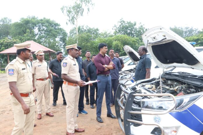 పోలీసు వాహనాలను తనిఖీ చేసిన జిల్లా ఎస్పీ రోహిత్ రాజు