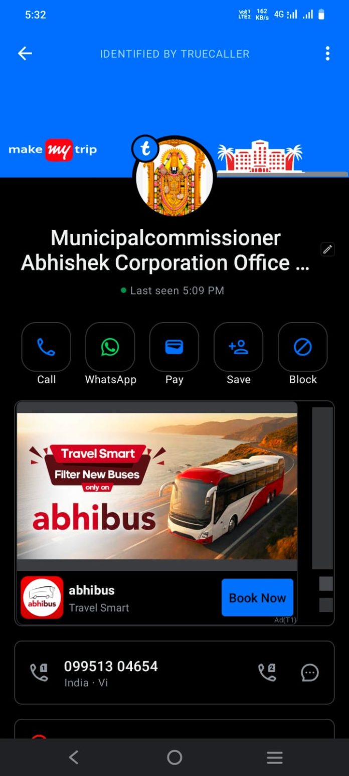 కాకతీయ, ఖమ్మం బ్యూరో : మున్సిపల్ కమిషనర్ పేరిట నకిలీ సోషల్ మీడియా ప్రొఫైల్ సృష్టించి ప్రజలను మోసం చేసే ప్రయత్నాలు జరుగుతున్నాయని నగరపాలక సంస్థ అధికారులు హెచ్చరించారు. ప్రజలు అప్రమత్తంగా ఉండాలని సూచించారు. మున్సిపల్ కమిషనర్ అభిషేక్ కార్పొరేషన్ ఆఫీస్ పేరుతో ట్రుకలర్ సహా ఇతర సామాజిక మాధ్యమాల్లో నకిలీ ఖాతా సృష్టించబడినట్లు తెలిపారు. ఈ అకౌంట్ ద్వారా అపరిచిత వ్యక్తులు ఫోన్ లేదా మెసేజ్ చేసి అత్యవసరమని చెప్పి డబ్బులు అడిగే అవకాశం ఉందని పేర్కొన్నారు.