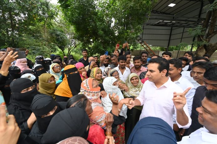పదేళ్లు కష్టపడి రాజధాని హైదరాబాద్లో అనేక అభివృద్ధి పనులు చేపట్టాం.. నిర్మాణాత్మక అభివృద్ధి చేపడితే ఇప్పుడు అధికారంలోకి వచ్చిన రేవంత్ సర్కారు దుర్మార్గంగా నిట్టనిలువునా కూల్చేస్తోందని కేటీఆర్ అన్నారు. తెలంగాణ ఏర్పడినప్పుడు రాష్ట్ర రాజధాని హైదరాబాద్లో ఉన్న అనేక సమస్యల పరిష్కారంపై బీఆర్ఎస్ దృష్టి పెట్టిందని కేటీఆర్ గుర్తుచేశారు. “ఒక్క సంవత్సరంలోనే అపార్ట్మెంట్ల నుంచి మొదలుకొని అన్ని ప్రాంతాల్లో జనరేటర్లు, ఇన్వర్టర్ల పరిస్థితి లేకుండా నిరంతర విద్యుత్ అందించగలిగాము. హైదరాబాద్ నగర ప్రగతి, శాంతి భద్రతలపై అనుమానాలు ఉన్నవాటన్నిటిని తొలగించి అగ్రశ్రేణి నగరంగా తీర్చిదిద్దాము. శాంతియుతంగా, సోదరభావంతో ప్రతి ఒక్కరూ కలిసి ఉండే విశ్వ నగరాన్ని తయారు చేసే దిశగా విజయం సాధించాము. మత రాజకీయాలు లేకుండా అన్ని వర్గాల ప్రజల సంక్షేమం, అభివృద్ధి కోసం పనిచేశాము,” అని తెలిపారు. కేసీఆర్ గారి హయంలో మైనార్టీల కోసం 204 గురుకుల విద్యాసంస్థలను ఏర్పాటు చేయడంతో పాటు ఉన్నత విద్య కోసం విదేశీ విద్యా సహాయం కింద ప్రత్యేకంగా రూ. 20 లక్షల స్కాలర్షిప్ కూడా ఏర్పాటు చేశారు. ఈ సంస్థల్లో చదువుకున్న అనేక మంది విద్యార్థులు డాక్టర్లు, ఇంజనీర్లుగా విజయవంతంగా వెళ్తున్నారని కేటీఆర్ వివరించారు.