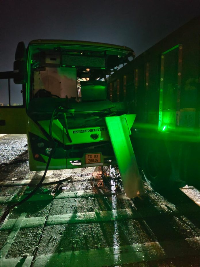 హైద‌రాబాద్ నుంచి వ‌స్తున్న బ‌స్సు ఢీ కొట్టిన లారీ