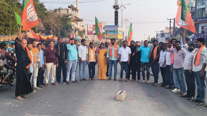 కాకతీయ, తొర్రూరు : మహబూబాబాద్ జిల్లా తొర్రూరు పట్టణంలో స్థానిక గెస్ట్ హౌస్ సెంటర్ వద్ద బీజేపీ తొర్రూరు అర్బన్ అధ్యక్షుడు పైండ్ల రాజేష్ ఆధ్వర్యంలో బాణాసంచా కాల్చి పెద్ద ఎత్తున సంబరాలు నిర్వహించారు. ఈ కార్యక్రమంలో బీజేపీ జిల్లా ఉపాధ్యక్షుడు పల్లె కుమార్, జిల్లా మాజీ కార్యదర్శి, మాజీ కౌన్సిలర్ కొలుపుల శంకర్, ఎస్సీ మోర్చా నాయకులు అలిసేరి రవిబాబు, మంగళపళ్ళి యాకయ్య, గడల శేఖర్, తూర్పాటి సాయి ముకేష్, గంధం రాజు, బీజేవైఎం జిల్లా ప్రధాన కార్యదర్శి కాగు నవీన్, మండల ప్రధాన కార్యదర్శులు నడిగడ్డ సందీప్, కొండా యాకన్న, బీజేవైఎం జిల్లా కాలేజీ అవుట్ రీచ్ కన్వీనర్ నూకల నవీన్, మండల పదాధికారులు జలగం రవి, గుండా సురేష్, గట్ల భరత్, తాటి జగదీష్, ధరావత్ తేజస్, శోభారాణి, సర్వి వెంకటేష్, నర్కుటి శివ గణేష్, తూర్పాటి మోహిత్, రాజ్ కుమార్, బొల్లు ప్రవీణ్, మక్తాల రమేష్, బబ్లూ, తదితరులు పాల్గొన్నారు.