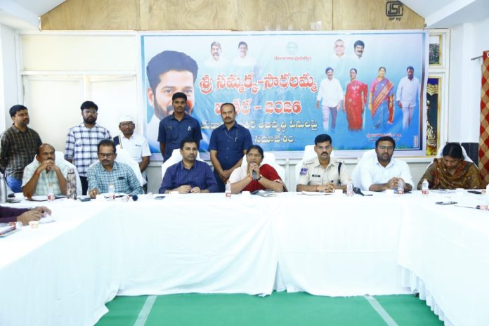 బుధవారం మేడారం హరిత హోటల్లో మంత్రి సీతక్క అధ్యక్షతన జిల్లా కలెక్టర్ దివాకర, జిల్లా ఎస్పీ రామ్నాథ్ కేకన్, ఐటీడీఏ పీఓ చిత్ర మిశ్రా, జిల్లా అటవీ అధికారి రాహుల్ కిషన్ జాదవ్లతో కలిసి అధికారులతో సమీక్ష సమావేశం నిర్వహించారు. ఈ సమావేశంలో ప్రోటోకాల్, భద్రత, వసతి, రవాణా, సాంస్కృతిక కార్యక్రమాలు, జాతర ఏర్పాట్లపై విస్తృతంగా చర్చించారు.