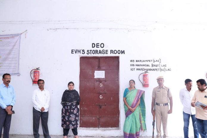 కేంద్ర ఎన్నికల సంఘం ఆదేశాల మేరకు ప్రతి నెలకు ఒకసారి నిర్వహించే సాధారణ తనిఖీలలో భాగంగా ఎనుమాముల వ్యవసాయ మార్కెట్ యార్డు లోని జిల్లా ఈవీఎం గోదాములను కలెక్టర్ తనిఖీ చేసి,ఈవీఎంలు భద్రపరిచిన స్ట్రాంగ్ రూమ్ గోదాంలకు సంబంధించిన రికార్డులు, కట్టుదిట్టమైన భద్రత చర్యలు, సీసీ కెమెరాల నిరంతర పర్యవేక్షణ గురించి వివరాలను అధికారులను కలెక్టర్ అడిగి తెలుసుకున్నారు.