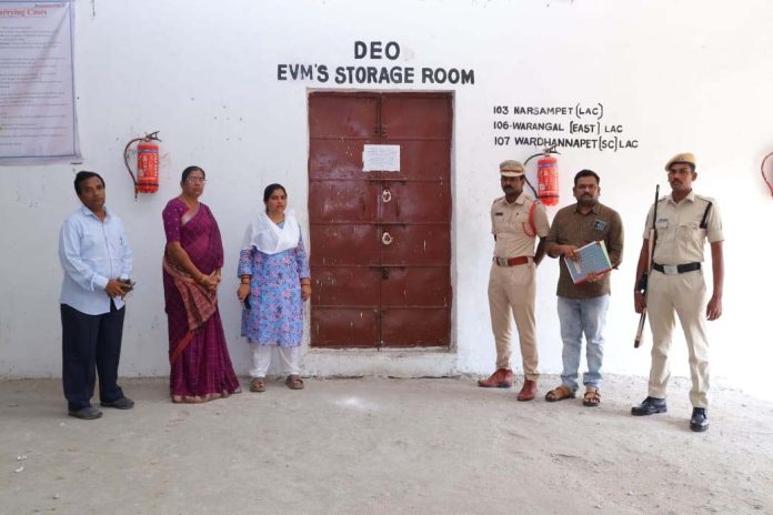 కాకతీయ, వరంగల్ సిటీ : వరంగల్ ఎనుమాముల వ్యవసాయ మార్కెట్ యార్డులోనీ ఈవీఎం గోదాములను జిల్లా కలెక్టర్ డాక్టర్ సత్య శారద గురువారం పరిశీలించారు. కేంద్ర ఎన్నికల సంఘం ఆదేశాల మేరకు ప్రతి నెలకు ఒకసారి నిర్వహించే సాధారణ తనిఖీలలో భాగంగా ఎనుమాముల వ్యవసాయ మార్కెట్ యార్డు లోని ఈవీఎం గోదాములను కలెక్టర్ తనిఖీ చేసినట్లు తెలిపారు. ఈవీఎంలు భద్రపరిచిన స్ట్రాంగ్ రూమ్ గోదాములకు సంబంధించిన రికార్డులు, కట్టుదిట్టమైన భద్రత చర్యలు, సీసీ కెమెరాల నిరంతర పర్యవేక్షణ గురించి వివరాలను అధికారులను కలెక్టర్ అడిగి తెలుసుకున్నారు. ఈ తనిఖీలో అదనవు కలెక్టర్ సంధ్యారాణి, తహసీల్దార్ శ్రీకాంత్, నాయబ్ తహసీల్దార్ రంజిత్, తదితరులు పాల్గొన్నారు.