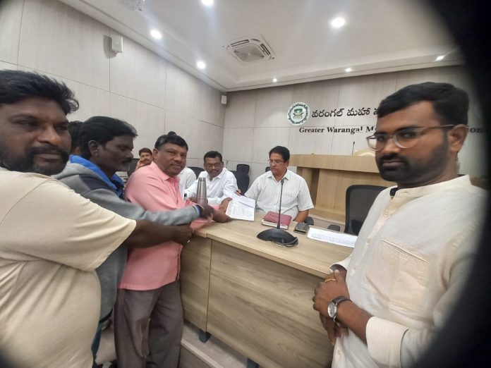 కాకతీయ, ఖిలావరంగల్ : శివనగర్లో బతుకమ్మ ఆటస్థలం మరియు శివనగర్ స్మశాన వాటిక స్థలానికి మధ్య ఎలాంటి అనుమతులు లేకుండా అక్రమంగా ఇంటి నిర్మాణం చేపడుతున్నారని అంబేద్కర్ యువజన సంఘం అధ్యక్షుడు పోలేపాక నరేందర్ ఫిర్యాదు చేశారు. ఈ ప్రాంతం వర్షాకాలంలో వర్షపు నీరు ప్రవహించే సహజ మార్గంగా ఉండటంతో పాటు, మట్టి కోటకు అతి సమీపంలో ఉండటంతో ప్రమాదకర పరిస్థితులు తలెత్తే అవకాశం ఉందని ఆయన ఆందోళన వ్యక్తం చేశారు. అనుమతులు లేకుండా జరుగుతున్న ఈ నిర్మాణం ప్రజా ప్రయోజనాలకు, భద్రతకు భంగం కలిగించేలా ఉందని పేర్కొంటూ, దీనిని తక్షణమే నిలిపివేయాలని కోరుతూ గ్రేటర్ వరంగల్ మున్సిపల్ కమిషనర్కు వినతిపత్రం సమర్పించారు. అక్రమ నిర్మాణాలపై కఠిన చర్యలు తీసుకొని, ప్రజా స్థలాలను పరిరక్షించాలని ఆయన డిమాండ్ చేశారు. ఈ కార్యక్రమంలో సింగిరెడ్డి ఉపేందర్, కే. రాజు, జన్ను రాజు తదితరులు పాల్గొన్నారు.