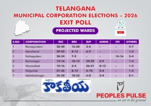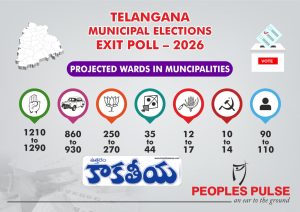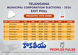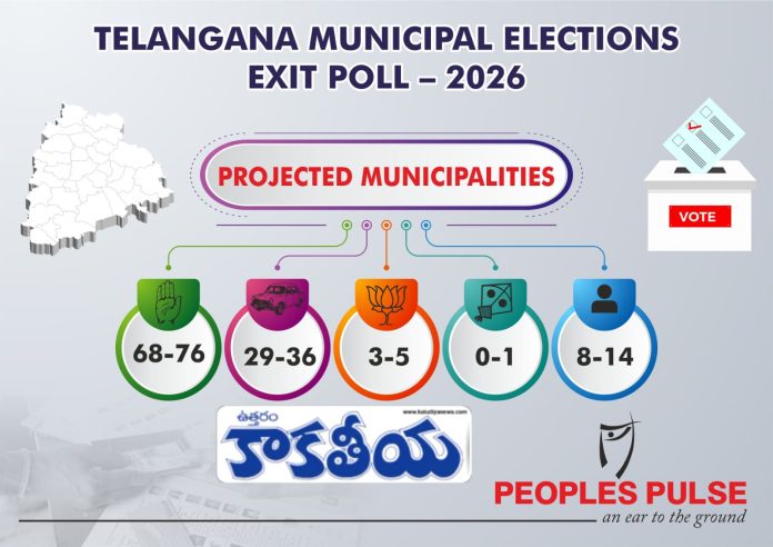 కాకతీయ, తెలంగాణ బ్యూరో : తెలంగాణలో ఈ రోజు జరిగిన మున్సిపల్ ఎన్నికల్లో అధికార కాంగ్రెస్ పార్టీ ప్రభంజనం సృష్టించబోతున్నట్లు పీపుల్స్ పల్స్ ఎగ్జిట్ పోల్ సర్వే అంచనా వేసింది. రాష్ట్రవ్యాప్తంగా జరిగిన 116 మున్సిపాలిటీలు, 7 కార్పొరేషన్ల ఎన్నికల్లో దాదాపు 70 శాతం మున్సిపాలిటీలను కాంగ్రెస్ పార్టీ కైవసం చేసుకునే అవకాశముందని సర్వే స్పష్టం చేసింది.