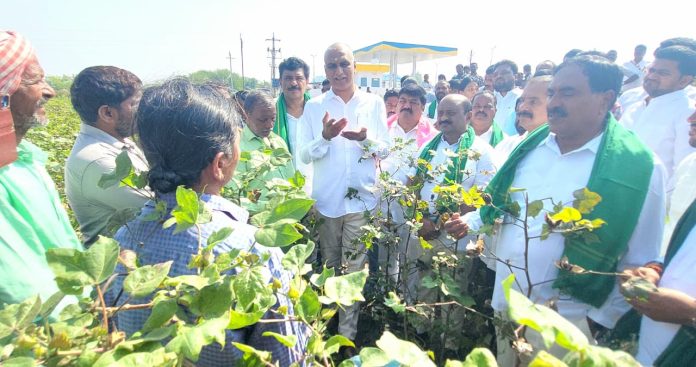 కాకతీయ, గీసుగొండ: రాష్ట్రంలో పత్తి రైతులు తీవ్రమైన సంక్షోభంలోకి నెట్టబడుతున్నారని మాజీ మంత్రి తన్నీరు హరీష్ రావు ఆవేదన వ్యక్తం చేశారు. వరంగల్ జిల్లా గీసుగొండ మండలం మొగిలిచెర్లలో మహిళా రైతు అచ్చ శోభ పత్తి పంటను పరిశీలించిన అనంతరం హరీష్ రావు మీడియాతో మాట్లాడుతూ..సీసీఐ తుగ్లక్ నిర్ణయాలు రైతులను తీవ్ర ఇబ్బందులకు గురి చేస్తున్నాయని,కొనుగోలు కేంద్రాల్లో అనవసరమైన అడ్డంకులు సృష్టించడం వల్ల పత్తి రైతులు అయోమయంలో ఉన్నారని విమర్శించారు. పత్తిని అమ్ముకునే అవకాశం లేక రైతులు దళారుల దయపై ఆధారపడే పరిస్థితి ఏర్పడిందని ఆవేదన వ్యక్తం చేశారు.ఈ సందర్భంగా రైతులు తమ సమస్యలను హరీష్ రావుకి వివరించారు.బిఆర్ఎస్ హయాంలో ఎరువులు, నాణ్యమైన విత్తనాలు, కరెంట్,పంట పెట్టుబడి పూర్తిగా అందుబాటులో ఉండేదని తెలిపారు. అయితే కాంగ్రెస్ ప్రభుత్వం వచ్చాక పరిస్థితులు పూర్తిగా మారిపోయా యని, కరెంట్ లేక,కాలువ నీళ్లు అందక పంటలు నష్టపోయా యని అభిప్రాయ పడ్డారు. కల్తీ విత్తనాల కారణంగా పంటలు దిగుబడి ఇవ్వకపోవడం, పండిన పత్తికి గిట్టుబాటు ధర లేక అప్పుల్లో కూరుకు పోయామని తెలిపారు. అకాల వర్షాలతో దెబ్బతిన్న పంటలను ప్రభుత్వ అధికారులు పరిశీలించడానికే రాలేదని రైతులు బాధపడ్డారు. సీసీఐ రూ.8,100/-కి కొనాల్సిన పత్తిని కొర్రిలుపెట్టి తిరస్కరించ డంతో,చివరకు దళారులకు 4,500/-కు అమ్ముకునే దుస్థితి వచ్చిందని వివరించారు.కాంగ్రెస్ ప్రభుత్వం వాగ్దానం చేసిన ఆరు గ్యారెంటీలు మోస పూరితమని, వాటిని నమ్మినందుకు ఇప్పుడు మూల్యం చెల్లిస్తున్నామని రైతులు వాపోయారు.రైతుల సమస్యలను ప్రభుత్వం అత్యవసరంగా పరిష్కరించాలని, సీసీఐ కొనుగోళ్లపై స్పష్టమైన మార్గదర్శకాలు ఇవ్వాలని హరీష్ రావు డిమాండ్ చేశారు.