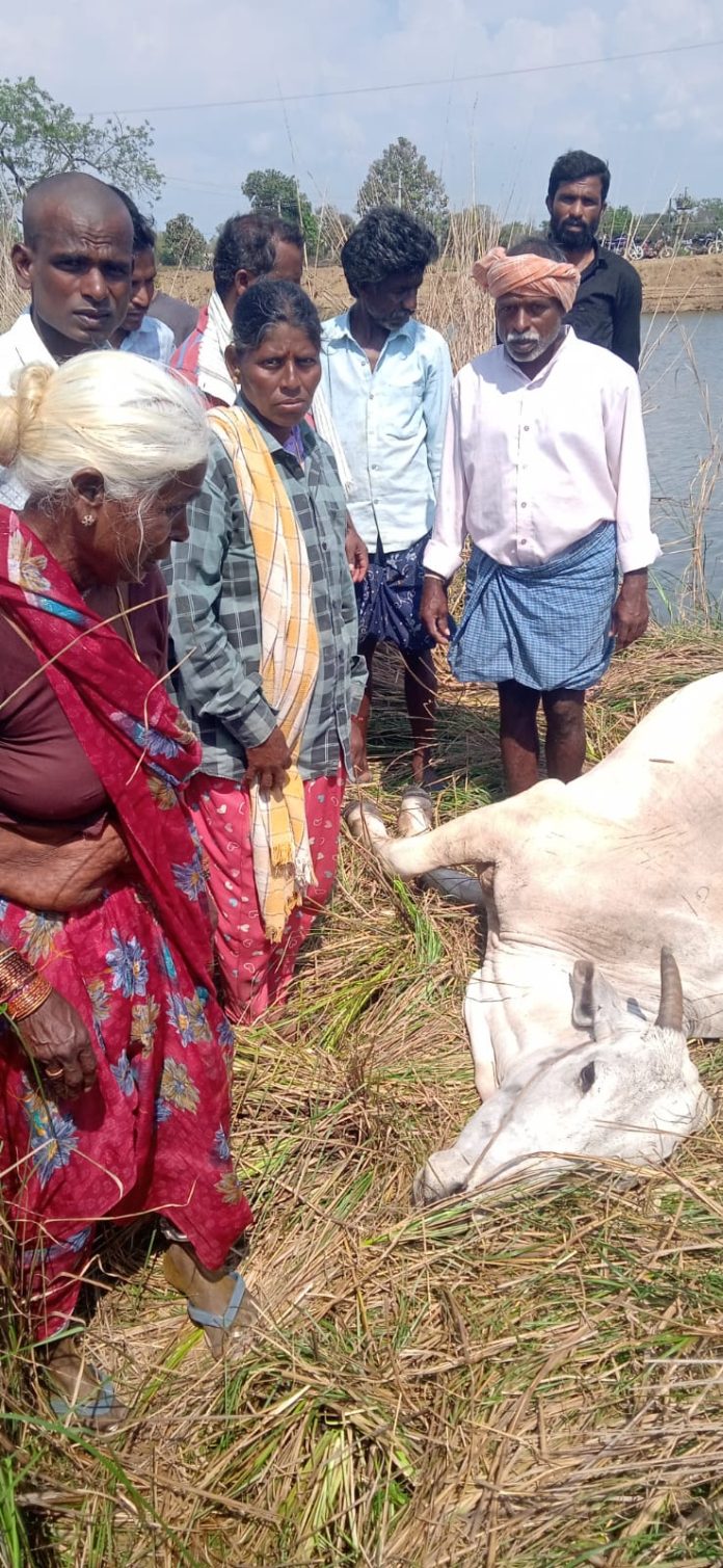 కాక‌తీయ‌, చెన్నారావుపేట : ప్రమాదవశాత్తు చెరువులో జారి పడిన ఆవు మృతి చెందడంతో రైతు కుటుంబానికి తీవ్ర ఆర్థిక నష్టం వాటిల్లింది. చెన్నరావుపేట మండలంలోని ఖాదర్‌పేట గొల్లపల్లి గ్రామానికి చెందిన రైతు బట్టమేకల మల్లేష్ ఆవును నీరు తాగించేందుకు చెరువుకు తీసుకెళ్లగా, అది జారి నీటిలో పడిపోయింది. బయటకు తీయడానికి చేసిన ప్రయత్నాలు ఫలించలేదు. వ్యవసాయానికి ఆధారమైన ఆవు మృతి చెందడంతో కుటుంబం ఆందోళన చెందుతోంది. మృతిచెందిన ఆవు విలువ సుమారు రూ.60 వేలుగా కుటుంబ సభ్యులు తెలిపారు. బాధిత కుటుంబానికి ప్రభుత్వం ఆర్థిక సహాయం అందించాలని వారు కోరుతున్నారు.