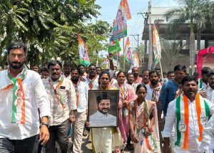 – సీఎం రేవంత్ రెడ్డి చిత్రపటంతో కాంగ్రెస్ శ్రేణుల నిరసన