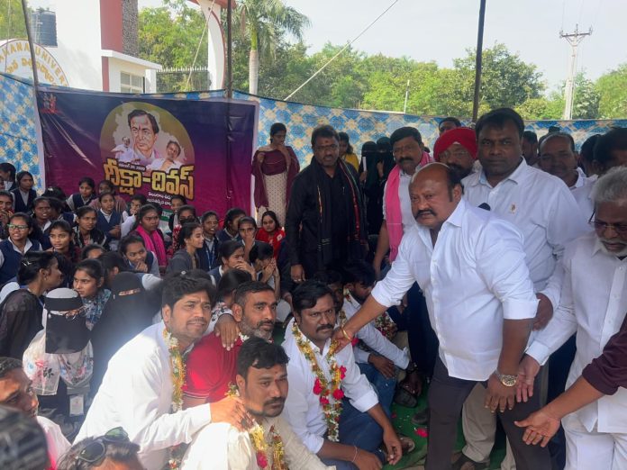 కాకతీయ, కరీంనగర్ : కరీంనగర్ శాతవాహన యూనివర్సిటీలో దీక్షా దివస్ కార్యక్రమం శనివారం ఘనంగా జరిగింది. బీఆర్ఎస్ వర్కింగ్ ప్రెసిడెంట్ కేటీఆర్ సూచనల మేరకు, మాజీ మంత్రి–కరీంనగర్ ఎమ్మెల్యే గంగుల కమలాకర్ మార్గనిర్దేశంతో, మాజీ గ్రంథాలయ సంస్థ చైర్మన్ పొన్నం అనిల్ కుమార్ గౌడ్ ఆధ్వర్యంలో ఈ కార్యక్రమం నిర్వహించారు. ప్రారంభంలో కేసీఆర్ చిత్రపటానికి కమలాకర్, మాజీ ఎమ్మెల్సీ నారదాసు లక్ష్మణరావు, నగర బీఆర్ఎస్ అధ్యక్షుడు చల్లా హరిశంకర్, రాష్ట్ర దీక్షా దివస్ ఇంచార్జ్ చిరుమిల్ల రాకేష్ తదితరులు పాలాభిషేకం చేశారు. అనంతరం “లాంగ్ లైవ్ కేసీఆర్” అంటూ నినాదాలు ఆవరణను మార్మోగించాయి.దీక్షా శిబిరంలో కూర్చున్న విద్యార్థి నాయకులకు అతిథులు పూలమాలలు వేసి శిబిరాన్ని అధికారికంగా ప్రారంభించారు. ఈ సందర్భంగా ఎమ్మెల్యే గంగుల కమలాకర్ మాట్లాడుతూ.ఉమ్మడి ఆంధ్రప్రదేశ్లో తెలంగాణ ప్రజలు ఎదుర్కొన్న అన్యాయం కేసీఆర్ హృదయాన్ని కదిలించిందన్నారు. డిప్యూటీ స్పీకర్ పదవికి రాజీనామా చేసి ప్రజా ఉద్యమాన్ని బలపరిచిన కేసీఆర్, నవంబర్ 29, 2009న కరీంనగర్ వేదికగా చేపట్టిన ఆమరణ నిరాహార దీక్షే తెలంగాణ రాష్ట్ర సాధనకు మన్ననలేని పునాది అయ్యిందని పేర్కొన్నారు. ప్రాణాలకు తెగించి పోరాడిన కేసీఆర్ వల్లనే ఈరోజు తెలంగాణ ప్రజలు స్వేచ్ఛా వాయువులు పీలుస్తున్నారని అన్నారు. తెలంగాణ హక్కులు, స్వాభిమానాన్ని కాపాడగల పార్టీ ఒక్కటే బీఆర్ఎస్ అని స్పష్టం చేశారు.అనంతరం పొన్నం అనిల్ కుమార్ గౌడ్ మాట్లాడుతూ.కేసీఆర్ చచ్చుడో తెలంగాణ వచ్చుడో అన్న రోజు నుంచి గులాబీ సైనికులుగా ఆయనతో పాటు నడుస్తున్నామని, అదే ఔన్నత్యంతో దీక్షా దివస్ను శాతవాహన యూనివర్సిటీలో నిర్వహించామని తెలిపారు. కార్యక్రమంలో ఎమ్మెల్యే గంగుల కమలాకర్, మాజీ ఎమ్మెల్సీ నారదాసు లక్ష్మణరావు, చిరుమిల్ల రాకేష్, బీఆర్ఎస్ నగర అధ్యక్షుడు చల్లా హరిశంకర్, మాజీ మేయర్ సర్దార్ రవీందర్ సింగ్, మాజీ చైర్మన్ ఏనుగు రవీందర్ రెడ్డి, కార్పొరేటర్లు బండారు వేణు, కర్ర సూర్యశేఖర్, మీర్ షౌకత్ అలీ, నేతి రవి వర్మ, నయీం, కేమసారం తిరుపతి, మిడిదొడ్డి నవీన్, రుద్ర రాధ తదితరులు పాల్గొన్నారు.దీక్షలో బీఆర్ఎస్ విద్యార్థి విభాగ నాయకులు ద్యావ మధుసుధన్ రెడ్డి, చుక్కా శ్రీనివాస్, సబ్బని హరీష్, గంగాధర చందు, బండవేణు, బొంకూరి మోహన్, మల్లెంకి శ్రీనివాస్, మోగిలోజు వెంకట్, పొన్నం రాజు, నారదాసు వసంత్, అంజి పటేల్, ఉప్పు శివ, ఒడ్నాల రాజు, అఫ్రోజ్, పటేల్ శ్రవణ్ రెడ్డి, నరేష్ రెడ్డి, గుర్రం కిరణ్ గౌడ్, దినేష్ తదితరులు పాల్గొన్నారు.