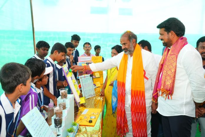 కాకతీయ, రుద్రంగి: విద్యార్థులు చిన్నతనం నుంచే శాస్త్ర సాంకేతిక రంగాలపై మక్కువ పెంచుకోవాలని రాష్ట్ర ప్రభుత్వ విప్ ఆది శ్రీనివాస్ అన్నారు. శనివారం జాతీయ సైన్స్ దినోత్సవం సందర్భంగా వేములవాడ పట్టణంలోని కృష్ణవేణి టాలెంట్ స్కూల్, వాణి విద్యాలయంలో సైన్స్ ఫెయిర్ను ఘనంగా నిర్వహించారు. ఈ కార్యక్రమానికి రాష్ట్ర ప్రభుత్వ విప్ ఆది శ్రీనివాస్ ముఖ్య అతిథిగా హాజరయ్యారు. ఈ సందర్భంగా ఏర్పాటు చేసిన సైన్స్ ప్రదర్శనలను ఆయన సందర్శించి విద్యార్థుల ప్రతిభను ప్రశంసించారు. అనంతరం ఆయన మాట్లాడుతూ… విద్యార్థుల్లో శాస్త్రీయ దృక్పథం పెంపొందించేందుకు ఇలాంటి కార్యక్రమాలు ఎంతో ఉపయోగకరమని అన్నారు. భవిష్యత్తులో దేశ అభివృద్ధికి శాస్త్ర సాంకేతిక రంగం కీలకమని, చిన్ననాటి నుంచే పరిశోధనా మనస్తత్వం అలవర్చుకోవాలని సూచించారు. శాస్త్రీయ దృక్పథం ప్రతి విద్యార్థి జీవితంలో భాగమవ్వాలని, ప్రశ్నించే స్వభావం పెంపొందించుకోవాలని సూచించారు. ముఖ్యమంత్రి రేవంత్ రెడ్డి నేతృత్వంలోని ప్రజా ప్రభుత్వం ఏర్పడిన వెంటనే విద్యార్థులకు డైట్ చార్జీలో కాస్మోటిక్ చార్జీలను పెంచి విద్యార్థులకు పౌష్టిక ఆహారం అందించనున్నట్లు తెలిపారు. ముఖ్యమంత్రి రేవంత్ రెడ్డి విద్యాశాఖను తన వద్ద ఉంచుకొని విద్యా విధానంలో సమూల మార్పులు తీసుకువస్తున్నారని ఆయన తెలిపారు.
