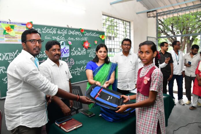 కాకతీయ, కరీంనగర్ బ్యూరో: కొత్త పల్లి మండలం ఎలగందల్ జిల్లా పరిషత్ ఉన్నత పాఠశాలలో చదువుతున్న విద్యార్థులకు దాత సహకారంతో బ్యాగులను పంపిణీ కార్యక్రమం నిర్వహించారు. ఈ కార్యక్రమానికి హాజరైన జిల్లా కలెక్టర్ పమేలా సత్పతి మాట్లాడుతూ ప్రభుత్వ పాఠశాల విద్యార్థులు అందుతున్న సౌకర్యాలను, సహాయ సహకారాలను సద్వినియోగం చేసుకోవాలని సూచించారు.