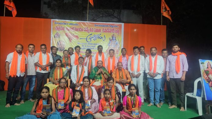 కాకతీయ,కరీంనగర్ : కరీంనగర్ నగరంలోని కిసాన్ నగర్ బస్తీలో చత్రపతి శివాజీ హిందూ సమ్మేళన సమితి ఆధ్వర్యంలో హిందూ సమ్మేళనం ఘనంగా నిర్వహించారు. గోపూజతో కార్యక్రమం ప్రారంభమై అనంతరం సమ్మేళనం కొనసాగింది. ఈ కార్యక్రమానికి ప్రధాన వక్తగా హాజరైన ఆర్ఎస్ఎస్ కరీంనగర్ విభాగ ప్రచార ప్రముఖ్ తడి గొప్పల శంకరయ్య మాట్లాడుతూ, సమాజంలో కులాల పేరుతో పెరుగుతున్న విభజన హిందువులకు నష్టదాయకమని పేర్కొన్నారు. హిందూ సమాజం ఐక్యంగా ఉన్నప్పుడే దేశం, ధర్మం సుస్థిరంగా ఉంటాయని అన్నారు. ఐకమత్యం లోపిస్తే ప్రపంచంలోని అనేక దేశాలు ఎదుర్కొంటున్న సమస్యల మాదిరిగానే పరిస్థితులు ఏర్పడే అవకాశముందని హెచ్చరించారు.