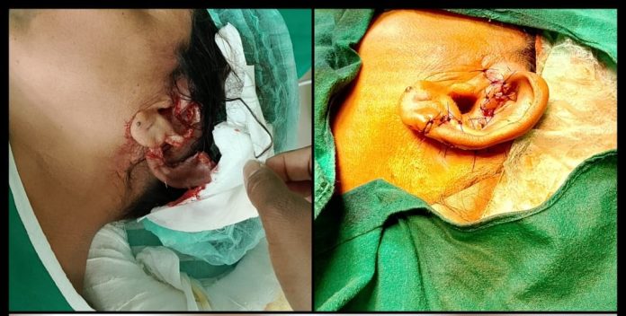 తెగిపోయిన చెవిని అతికించిన వైద్యులు