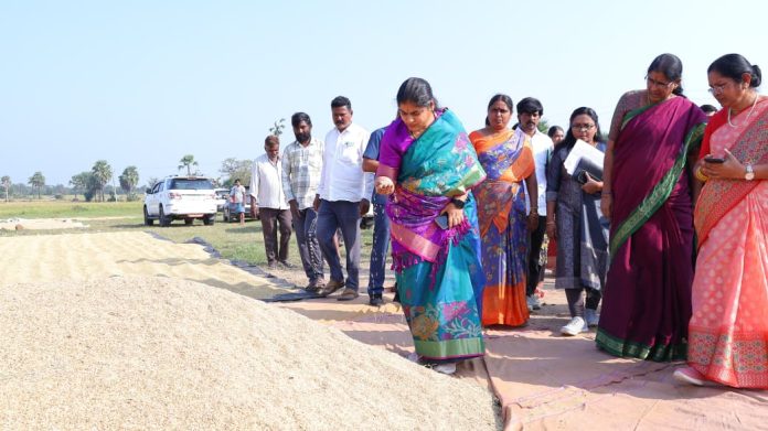 ధాన్యం కొనుగోలు కేంద్రాన్ని తనిఖీ చేసిన కలెక్టర్ డాక్టర్ సత్య శారద