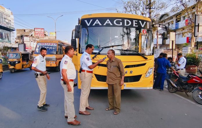 కాకతీయ, హనుమకొండ : పర్వతగిరి ప్రాంతంలో ఇటీవల జరిగిన పాఠశాల బస్సు ప్రమాదం నేపథ్యంలో హనుమకొండ ట్రాఫిక్ పోలీసులు అప్రమత్తమయ్యారు. పోలీస్ కమిషనర్ ఆదేశాల మేరకు స్కూల్ బస్సుల భద్రతపై ప్రత్యేక దృష్టి సారించారు. ఈ క్రమంలో మంగళవారం ట్రాఫిక్ ఇన్స్పెక్టర్ ఆధ్వర్యంలో హనుమకొండ పరిసర ప్రాంతాల్లో స్కూల్ బస్ డ్రైవర్లకు డ్రంక్ అండ్ డ్రైవ్ తనిఖీలు నిర్వహించారు. విద్యార్థుల రక్షణను దృష్టిలో ఉంచుకుని ఈ తనిఖీలు చేపట్టినట్లు అధికారులు తెలిపారు. పాఠశాల బస్సు డ్రైవర్లు మద్యం సేవించి వాహనాలు నడిపితే కఠిన చట్టపరమైన చర్యలు తీసుకుంటామని ట్రాఫిక్ ఇన్స్పెక్టర్ హెచ్చరించారు. డ్రైవర్లు పూర్తిస్థాయిలో బాధ్యతాయుతంగా వ్యవహరించాలని, నిబంధనలు ఉల్లంఘిస్తే ఉపేక్షించబోమని స్పష్టం చేశారు. విద్యార్థుల భద్రత విషయంలో ఎలాంటి నిర్లక్ష్యానికీ తావులేదని, స్కూల్ బస్సుల నిర్వహణ, డ్రైవింగ్ విధానాలపై నిరంతర పర్యవేక్షణ కొనసాగుతుందని పోలీసులు తెలిపారు. భవిష్యత్తులో కూడా ఇలాంటి ఆకస్మిక తనిఖీలు తరచూ నిర్వహిస్తామని వెల్లడించారు. తల్లిదండ్రులు, పాఠశాల యాజమాన్యాలు కూడా డ్రైవర్ల ప్రవర్తనపై ప్రత్యేక శ్రద్ధ వహించాలని, అనుమానాస్పదంగా కనిపిస్తే వెంటనే పోలీసులకు సమాచారం అందించాలని ట్రాఫిక్ పోలీసులు సూచించారు.