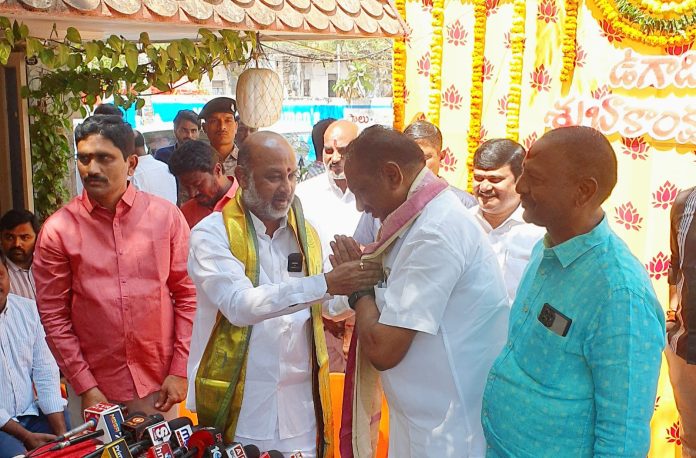 కాకతీయ, కరీంనగర్ : నగరంలోని చైతణ్యపురిలో కేంద్ర హోంశాఖ సహాయ మంత్రి బండి సంజయ్ కుమార్ను బీజేపీ రాష్ట్ర అధికార ప్రతినిధి, డిప్యూటీ మేయర్ యాదగిరి సునీల్రావు మర్యాదపూర్వకంగా కలిశారు. ఉగాది పర్వదినం సందర్భంగా సంజయ్కు శుభాకాంక్షలు తెలియజేశారు.తెలంగాణ రాష్ట్ర అధికార ప్రతినిధి బాధ్యతలు కల్పించినందుకు సంజయ్కు సునీల్రావు శాలువాతో సత్కరించి కృతజ్ఞతలు తెలిపారు. అనంతరం సంజయ్ కూడా సునీల్రావును శాలువాతో సత్కరించి అభినందించారు.ఈ సందర్భంగా బండి సంజయ్ మాట్లాడుతూ రాష్ట్రంలో బీజేపీని మరింత బలోపేతం చేయాలని, పార్టీ శ్రేణులతో సమన్వయంగా పనిచేయాలని సూచించారు. రాబోయే రోజుల్లో పార్టీని అధికారంలోకి తీసుకురావడమే లక్ష్యంగా కృషి చేయాలని పేర్కొన్నారు.