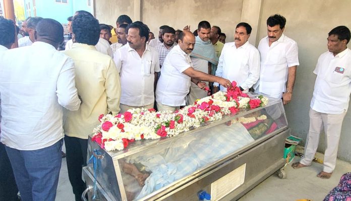 కాకతీయ, గీసుగొండ: మృతురాలికి మాజీ మంత్రి ఎర్రబెల్లి దయాకర్ రావు, పరకాల మాజీ ఎమ్మెల్యే చల్లా ధర్మారెడ్డి ఘన నివాళులు అర్పించారు. మండలంలోని మచ్చాపూర్ గ్రామానికి చెందిన బీఆర్ఎస్ సీనియర్ నాయకుడు, మాజీ సర్పంచ్ బోడకుంట్ల ప్రకాష్ తల్లి ఎల్లమ్మ నిన్న సాయంత్రం మృతిచెందింది.నేడు ఎల్లమ్మ పార్దేవ దేహాన్ని సందర్శించిన ఎర్రబెల్లి దయాకర్ రావు, చల్లా ధర్మారెడ్డి పూలమాలలు వేసి నివాళులర్పించారు. అనంతరం కుటుంబ సభ్యులను పరామర్శించి మృతికి గల వివరాలు తెలుసుకున్నారు.దుఃఖంలో ఉన్న కుటుంబానికి ధైర్యం చెప్పారు.ఈ కార్యక్రంలో ఎనమాముల మార్కెట్ కమిటీ మాజీ చైర్మన్ చింతం సదానందం, బీఆర్ఎస్ నాయకులు మాజీ జడ్పీటీసీ పోలీసు ధర్మారావు, గుర్రం రఘు, చల్లా వేణుగోపాల్ రెడ్డి, పూండ్రు జైపాల్ రెడ్డి, అంకతి నాగేశ్వరరావు, కోటి, జక్కు మురళి, నమిండ్ల రాజు, యూత్ నాయకులు సిరిశే శ్రీకాంత్, కోట ప్రమోద్, సల్ల రాజు, యుగేందర్, మంద రాజేందర్, గోనే నాగరాజు, జహీర్ తదితరులు పాల్గొన్నారు.
