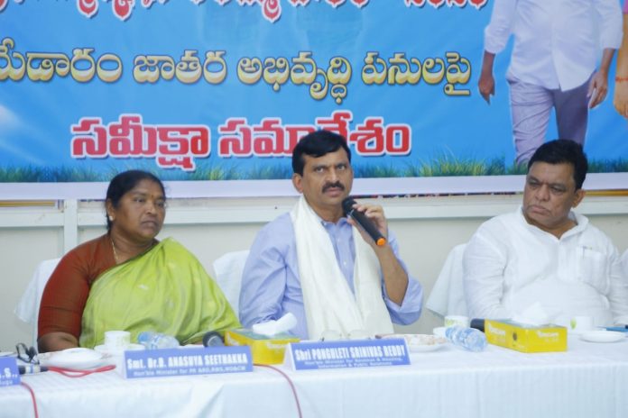 మంత్రి పొంగులేటి మాట్లాడుతూ ఇంకా 50 రోజుల్లో ఈ పనులన్నీ ఎటువంటి ఆటంకం లేకుండా సాగేలా జిల్లా కలెక్టర్, ఎస్పీలకు సూచనలు ఇచ్చాం అని, మంత్రివర్యురాలు సీతక్క స్వయంగా పర్యవేక్షణ చేస్తారు అని, ఎవరు సూచనలు, సలహాలు ఇచ్చినా వాటిని స్వీకరిస్తాం అని చెప్పారు. అభివృద్ధి పనులు పూర్తయిన తర్వాత భక్తుల సౌకర్యం గణనీయంగా పెరుగుతుందని తెలిపారు. గత జాతరలో కోటి మందికి పైగా భక్తులు పాల్గొన్నారని, ఈసారి ఆ సంఖ్య రెట్టింపు కానుందని మంత్రి పేర్కొన్నారు.