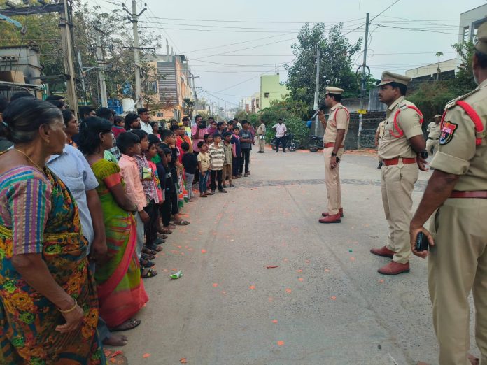కాకతీయ, కరీంనగర్ : కరీంనగర్ మున్సిపల్ ఎన్నికల నేపథ్యంలో నగరంలోని త్రీ టౌన్ పోలీస్ స్టేషన్ పరిధిలో ప్రజల్లో విశ్వాసం కల్పించడం కోసం కిసాన్ నగర్, సుభాష్ నగర్, శివాజీ నగర్, బుట్టిరాజారామ్ కాలనీల్లో ఫ్లాగ్ మార్చ్ నిర్వహించారు. ఈ సందర్భంగా త్రీ టౌన్ ఇన్‌స్పెక్టర్ ఆఫ్ పోలీస్ తిరుమల్ ప్రజలతో ప్రత్యక్షంగా మాట్లాడి ప్రాంతాల్లోని పరిస్థితిని సమీక్షించారు. ఎన్నికల సమయంలో శాంతియుత వాతావరణం కొనసాగేందుకు ప్రజలు సహకరించాలని కోరారు. ఫ్లాగ్ మార్చ్‌లో భాగంగా సాధారణ ప్రజలు, స్థానిక ప్రజాప్రతినిధులకు ఆదర్శ ఎన్నికల ప్రవర్తనా నియమావళి (మోడల్ కోడ్ ఆఫ్ కండక్ట్ )పై అవగాహన కల్పించారు. ఎన్నికల మార్గదర్శకాలను తప్పనిసరిగా పాటించాలని, శాంతి భద్రతలను కాపాడుకోవాలని, ఎలాంటి చట్టవిరుద్ధ కార్యకలాపాలకు పాల్పడవద్దని సూచించారు.