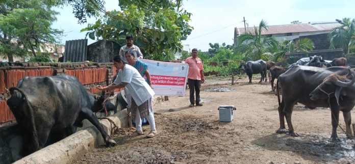 కాకతీయ, బయ్యారం : పశుసంవర్ధక శాఖ ఆధ్వర్యంలో పశువులకు ఉచితంగా గాలికుంటు వ్యాధి నివారణ టీకాల కార్యక్రమం నిర్వహిస్తున్నట్లు బయ్యారం మండలం గంధంపల్లి పశువైద్యాధికారి బానోత్ లక్ష్మి తెలిపారు. అక్టోబర్ 15 నుంచి నవంబర్ 14 వరకు టీకాల కార్యక్రమాన్ని పాడి రైతులు సద్వినియోగం చేసుకోవాలని ఆమె సూచించారు. గాలికుంటు వ్యాధి నివారణకు పశువుల పాకలను శుభ్రంగా ఉంచుకోవాలన్నారు. నాలుగు నెలల వయసు దాటిన దూడలకు,పెద్ద పశువులకు ఏడాదికి రెండుసార్లు వ్యాధి నిరోధక టీకాలు తప్పనిసరి వేయించాలని పేర్కొన్నారు. ఈ కార్యక్రమంలో వెటర్నరీ సిబ్బంది బి.వినోద, గోపాలమిత్ర ప్రకాష్ రెడ్డి పాల్గొన్నారు.