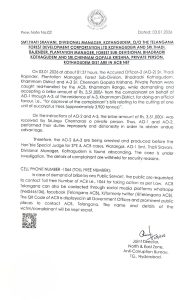 కాకతీయ, తెలంగాణ బ్యూరో : తెలంగాణ ఫారెస్ట్ డెవలప్మెంట్ కార్పొరేషన్ (టీఎఫ్డీసీ) పరిధిలో పనిచేస్తున్న ఓ రేంజర్ స్థాయి అధికారి ఏసీబీ వలలో చిక్కారు. కొత్తగూడెం అటవీ విభాగానికి చెందిన ఈ అధికారి ఓ వ్యక్తి నుంచి రూ.3.50 లక్షల లంచం స్వీకరిస్తున్న సమయంలో ఖమ్మం ఏసీబీ డీఎస్పీ వై. రమేష్ నేతృత్వంలోని బృందం రెడ్హ్యాండెడ్గా పట్టుకుంది. ఈ ఘటనతో అటవీ శాఖలో తీవ్ర కలకలం రేగింది. అటవీ అనుమతులు, పనుల మంజూరు, ఫైళ్ల క్లియరెన్స్ విషయంలో లంచం డిమాండ్ చేసినట్లు బాధితుడు ఏసీబీ అధికారులను ఆశ్రయించినట్టు సమాచారం. ఫిర్యాదు ఆధారంగా ముందస్తు ప్రణాళిక రూపొందించిన ఏసీబీ అధికారులు వల పన్ని, నగదు స్వీకరిస్తున్న క్షణంలో దాడి చేసి అధికారిని అదుపులోకి తీసుకున్నారు.
