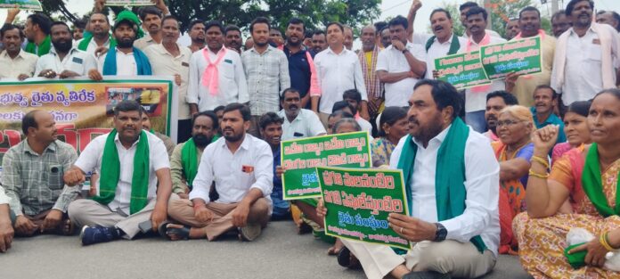 కాకతీయ, రాయపర్తి: పంటల అదునుకు యూరియా అందక నెల రోజుల నుండి తిండి తిప్పలు మాని యూరియా కోసం రైతులు పడిగాపులు కాస్తూ బేజారవుతున్నారని మాజీమంత్రి ఎర్రబెల్లి దయాకర్ రావు అన్నారు. యూరియా అందించాలని మండల కేంద్రంలోని వరంగల్- ఖమ్మం జాతీయ రహదారి(563)పై శుక్రవారం రైతు సంఘాలు, బీఆర్ఎస్ పార్టీ శ్రేణులు పెద్ద ఎత్తున ధర్నాకు దిగారు.