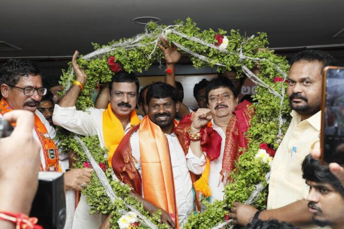 కాకతీయ, తెలంగాణ బ్యూరో : బీఆర్ ఎస్ మాజీ ఎమ్మెల్యే గువ్వల బాలరాజు ఆదివారం బీజేపీ తీర్థం పుచ్చుకున్నారు. నాగర్కర్నూల్ జిల్లా అచ్చంపేట నియోజకవర్గం నుంచి గతంలో ప్రాతినిధ్యం వహించిన గువ్వల గత కొంతకాలంగా బీజేపీలో చేరుతున్నట్లుగా ఊహాగానాలు వినిపించగా.. ఇటీవల ఆయనే స్వయంగా ఈ విషయాన్ని ధ్రువీకరించారు. చెప్పినట్లుగా ఆదివారం నాంపల్లిలోని పార్టీ రాష్ట్ర కార్యాలయంలో జరిగిన కార్యక్రమంలో బీజేపీ తెలంగాణ రాష్ట్ర అధ్యక్షుడు రాంచందర్ రావు , రాజ్యసభ సభ్యులు డాక్టర్ కె.లక్ష్మణ్ సమక్షంలో కాషాయ కండువా కప్పుకున్నారు.