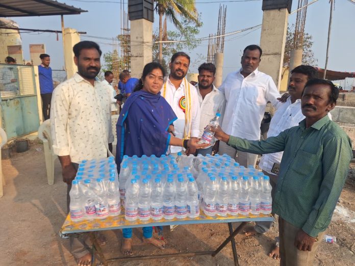 భక్తులకు ఉచితంగా వాటర్ బాటిళ్ల పంపిణీ
