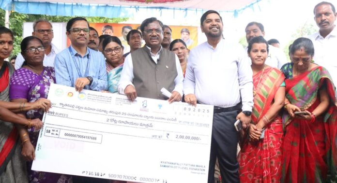 కాకతీయ, రామకృష్ణాపూర్ : మహిళలు ఆర్థికంగా ఎదిగేందుకు వీలుగా బ్యాంక్ లింకేజీ రుణాలను రాష్ట్ర ప్రభుత్వం అందజేస్తుందని కార్మిక, గనుల శాఖ మంత్రి గడ్డం వివేక్ వెంకటస్వామి అన్నారు. మంగళవారం క్యాతన్ పల్లి మున్సిపాలిటీ పరిధిలోని పట్టణ మహిళా సమాఖ్య ఆధ్వర్యంలో 25 సంఘాలకు రూ.2 కోట్ల బ్యాంక్ లింకేజీ రుణాల చెక్కును జిల్లా కలెక్టర్ కుమార్ దీపక్, దక్కన్ గ్రామీణ బ్యాంక్ మేనేజర్ దుర్గం మనోహర్ తో కలిసి అందించారు.
