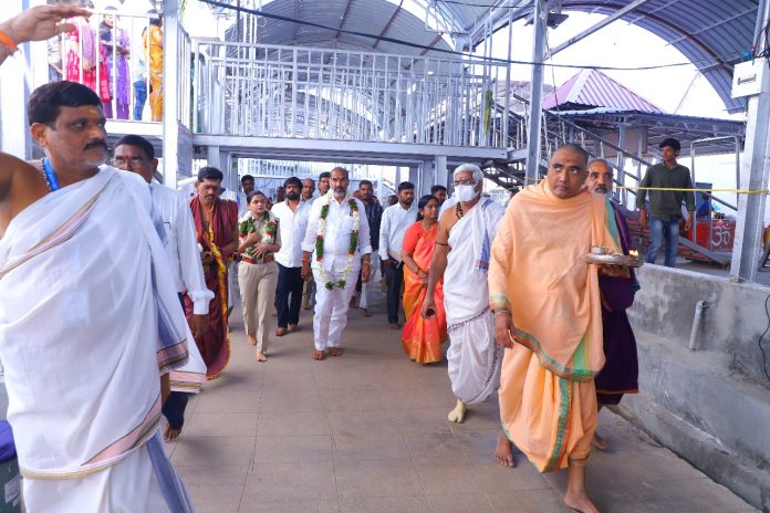 కాకతీయ, వేములవాడ : వేములవాడలోని శ్రీ పార్వతి రాజరాజేశ్వర స్వామి దేవస్థానానికి అనుబంధ ఆలయమైన శ్రీ భీమేశ్వర స్వామి ఆలయాన్ని బుధవారం ప్రభుత్వం విప్, వేములవాడ ఎమ్మెల్యే ఆది శ్రీనివాస్, ఏఎస్పీ శేషాద్రి కలిసి దర్శించుకున్నారు. ప్రత్యేక పూజలు నిర్వహించిన అనంతరం వేదపండితులు వారికి వేదాశీర్వచనం అందించారు. ఆలయ ఈవో ఎల్. రమాదేవి శేషవస్త్రం, లడ్డూ ప్రసాదం అందజేశారు. తదుపరి ఆలయ భద్రతా వ్యవస్థను మరింత బలోపేతం చేస్తూ ఏర్పాటు చేసిన 32 సీసీ కెమెరాలు, 15 హ్యాండ్ మెటల్ డిటెక్టర్లు, 5 డోర్ ఫ్రేమ్ మెటల్ డిటెక్టర్లు ప్రభుత్వ విప్ చేతుల మీదుగా ప్రారంభమయ్యాయి. భక్తుల రద్దీ దృష్ట్యా ఎలాంటి అసౌకర్యం కలగకుండా అధికారులు అన్ని ఏర్పాట్లు పకడ్బందీగా నిర్వహించాలని ఆయన సూచించారు. భక్తులతో మాట్లాడి సమస్యలు తెలుసుకున్నారు.కార్యక్రమంలో సీఐ వీర ప్రసాద్, ఈఈ రాజేష్, డీఈ రఘునందన్, మైపాల్ రెడ్డి, ఏఈ రామకృష్ణారావు, ఏఈఓ బ్రహ్మంగారి శ్రీనివాస్, జయకుమారి, అశోక్ కుమార్, పర్యవేక్షకులు శ్రీనివాస్ శర్మ, శ్రీకాంతాచార్యులు, ఆలయ సిబ్బంది, పోలీసు సిబ్బంది పాల్గొన్నారు.