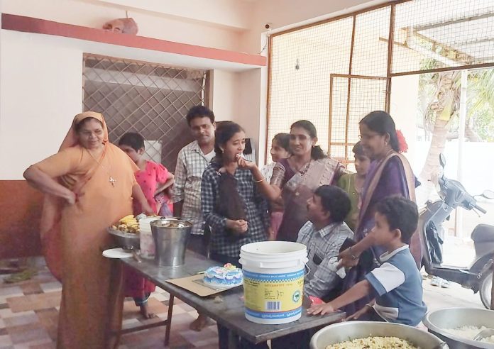 కాకతీయ, బోనకల్ : మార్పు స్వచ్ఛంద సంస్థ ఆధ్వర్యంలో మానసిక వికలాంగుల శరణాలయం శాంతి నిలయం నందు వైరా వాస్తవ్యులు గుండ్ల గోపాలకృష్ణ, కళ్యాణి దంపతుల కుమార్తె గుండ్ల సాహితీ జన్మదిన వేడుకలను శనివారం ఘనంగా నిర్వహించారు. ఈ సందర్భంగా బర్త్ డే కేక్ కట్ చేసి శాంతి నిలయంలోని అనాధ దివ్యాంగులకు అన్నదానం నిర్వహించారు. కార్యక్రమంలో మార్పు స్వచ్ఛంద సంస్థ అధ్యక్షురాలు గుడిమెట్ల రజిత, గుండ్ల గోపాలకృష్ణ, గుండ్ల కళ్యాణి, గుండ్ల సాహితీ, గుండ్ల రోహన్ కార్తీక్, బొడ్డు లక్ష్మణ్, మనీషా, దీక్షిత శ్రీ, లోహన్స్ సాయి మణికంఠ, శాంతి నిలయం నిర్వాహకులు సిస్టర్ ఆల్ ఫీ, సిస్టర్ బిజిలీ, సిస్టర్స్ శ్యామల, ప్రేమ, రోజా, లియా తదితరులు పాల్గొన్నారు.