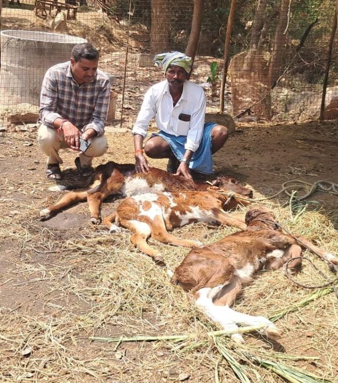 కాకతీయ,చిగురుమామిడి : హైనా దాడిలో పశువులు మృతి చెందడంతో రైతు కుటుంబం తీవ్ర ఆవేదనకు గురైంది. కరీంనగర్ జిల్లా చిగురుమామిడి మండలం సుందరగిరి గ్రామానికి చెందిన రైతు గండికోట పెద్దశ్రీనివాస్ వ్యవసాయ పొలం వద్ద షెడ్డులో ఉన్న మూడు లేగదూడలు, రెండు మేకలపై హైనా దాడి చేసి హతమార్చిన ఘటన శుక్రవారం వెలుగుచూసింది. ఈ ఘటనపై సమాచారం అందుకున్న ఫారెస్ట్ సెక్షన్ ఆఫీసర్ శేఖర్ సంఘటన స్థలానికి చేరుకుని మృతి చెందిన పశువులను పరిశీలించారు. అక్కడ ఉన్న అడుగులను పరిశీలించి ఇది హైనా దాడేనని నిర్ధారించారు. రైతులు పశువులను రక్షణగా ఇనుపకంచెల్లో ఉంచుకోవాలని సూచించారు. అడవి మృగాల దాడిలో మృతి చెందిన పశువులపై ఆర్థిక సాయం పొందేందుకు మీ సేవలో దరఖాస్తు చేసుకోవాలని తెలిపారు. మృతి చెందిన లేగదూడలు, మేకలతో సుమారు 50 వేల రూపాయల నష్టం వాటిల్లిందని బాధిత రైతు గండికోట పెద్దశ్రీనివాస్ తెలిపారు. ఇటీవలే అప్పు చేసి కొనుగోలు చేసిన ఆవుల లేగదూడలు మృతి చెందడంతో తన పరిస్థితి మరింత దారుణంగా మారిందని వాపోయారు. బాధిత రైతు కుటుంబాన్ని ప్రభుత్వం వెంటనే ఆదుకోవాలని పాలకేంద్రం డైరెక్టర్ పెసరి శ్రీనివాస్, ట్రాక్టర్స్ అసోసియేషన్ అధ్యక్షుడు నునేగొప్పుల ఐలయ్య, గండికోట చిన్నశ్రీనివాస్, గండికోట వెంకటేష్, గండికోట అంజి తదితరులు కోరారు.
