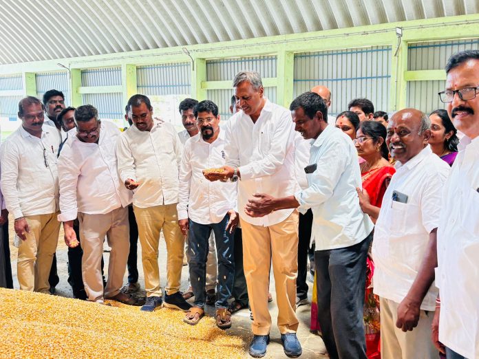 కొనుగోలు మొదలు పెట్టకపోతే రైతులు కేంద్రాలకు రావడం లేదన్నారు.రైతులు రోజుల తరబడి కేంద్రాల వద్ద పడిగాపులు కాయడం చాలా కష్టంగా మారుతుందన్నారు. ప్రభుత్వం ప్రకటించిన రూ.2400 మద్దతు ధరతోనే కొనుగోలు చేయాలని డిమాండ్ చేశారు.13, 14 శాతం తేమ నిబంధనల ప్రకారం మొక్కజొన్న కొనాలని అధికారులకు సూచించారు.వెంటనే భరదన్ విడుదల చేసి కొనుగోలు ప్రారంభించాలని అన్నారు. ఈసారి నీటి సమస్య కారణంగా రైతులు వరి బదులు మొక్కజొన్న పంట వేశారని, తపస్ పల్లి రిజర్వేయర్ నుంచి నీరు సరిగ్గా రాకపోవడంతో మొక్కజొన్న సాగు పెరిగిందని తెలిపారు.ప్రస్తుతం మొక్కజొన్న కోతకు వచ్చిందని,ప్రభుత్వం కొనుగోలు చేయకపోతే రైతులు తీవ్ర నష్టపోతారని పైర్ అయ్యారు.చేర్యాల పాత డివిజన్ పరిధిలో నర్మెట, తరిగొప్పుల, బచ్చన్నపేట ప్రాంతాల నుంచి ప్రైవేట్ మార్కెట్ వ్యాపారులు వచ్చి దోపిడీ చేసే పరిస్థితి ఉంటుందన్నారు. లోకల్ రైతులను ఇష్టం వచ్చినట్లు ఇబ్బంది పెట్టడం జరుగుతోందన్నారు.అవసరమైతే మార్క్ఫెడ్ ఎండీ వరకు వెళ్లి పోరాటం చేస్తామని హెచ్చరించారు.అకాల వర్షాల వల్ల మొక్కజొన్న తడిసి నష్టం జరిగే ప్రమాదం ఉందని,చేర్యాల, నర్మెట కేంద్రాల్లో వెంటనే కొనుగోలు ప్రారంభించాలని,రైతులకు న్యాయం చేయాలని అధికారులను డిమాండ్ చేశారు.