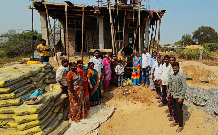 మునిగలవీడు గ్రామంలో లబ్ధిదారుడి ఇంటి స్లాబ్ పనుల ప్రారంభం