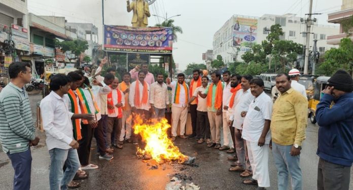 – అంబేద్కర్ చౌరస్తాలో ప్రభుత్వ దిష్టిబొమ్మ దహనం