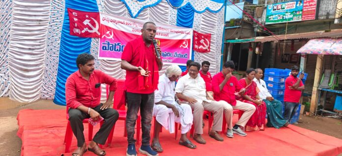 కాకతీయ, వెంకటాపురం: ఆపరేషన్ కగార్ పేరుతో కోట్లాది రూపాయలు ఖర్చు పెట్టడమే కాకుండా హెలికాప్టర్లు, 35 వేల మంది సైన్యంతో గిరిజనులను ఇబ్బందులకు గురిచేసిన కేంద్ర రాష్ట్ర ప్రభుత్వాలు ఏజెన్సీలోని గిరిజనుల రవాణా సౌకర్యం కోసం 100 కిలోమీటర్ల రోడ్డు నిర్మాణానికి రూ 100 కోట్లు కేటాయించకపోవడం సిగ్గుచేటని మాజీ ఎమ్మెల్యే, సిపిఐ (ఎం) రాష్ట్ర కార్యదర్శివర్గ సభ్యుడుజూలకంటి రంగారెడ్డి ఎద్దేవా చేశారు. యాకన్న గూడెం నుండి వెంకటాపురం వరకు అధ్వానంగా ఉన్న రోడ్డు నిర్మాణానికి రూ 100 కోట్లు కేటాయించాలని సిపిఎం ఆధ్వర్యంలో చేపట్టిన పాదయాత్ర ఆదివారం మండల కేంద్రానికి చేరుకుంది. ఈ పాదయాత్ర యాకన్నగూడెం నుండి 32 కిలోమీటర్లు సాగింది.