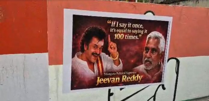కాక‌తీయ‌, జగిత్యాల: కాంగ్రెస్ పార్టీకి రాజీనామా చేస్తున్నట్లు ప్రకటించిన క్షణాల వ్యవధిలోనే మాజీ మంత్రి జీవన్ రెడ్డి ఇంటి ముందు వెలసిన పోస్టర్ రాజకీయ వర్గాల్లో సంచలనంగా మారింది. సినీ నటుడు రజనీకాంత్ ప్రసిద్ధ డైలాగ్ “నేను ఒక్కసారి చెప్తే వందసార్లు చెప్పినట్టే”తో జీవన్ రెడ్డి ఫోటో కలిపిన ఈ పోస్టర్ స్పష్టమైన రాజకీయ సందేశంగా నిలిచింది. పోస్టర్ బయటపడిన వెంటనే దాని ఫోటోలు సోషల్ మీడియాలో మెరుపువేగంతో వైరల్ అవుతూ చర్చనీయాంశంగా మారాయి. జీవన్ రెడ్డి తీసుకున్న నిర్ణయం వెనక్కి తిరిగే అవకాశం లేదన్న సంకేతాన్ని అనుచరులు బలంగా ఇస్తున్నారని రాజకీయ వర్గాలు విశ్లేషిస్తున్నాయి. క్యాడర్‌లో ఇప్పటికే ఉన్న ఉత్సాహం ఈ పోస్టర్‌తో మరింత పెరిగిందన్న అభిప్రాయం వ్యక్తమవుతోంది. ఇప్పటికే జగిత్యాలలో రాజకీయ వాతావరణం వేడెక్కిన తరుణంలో ఈ పోస్టర్ మరింత ఉత్కంఠను రేకెత్తించింది. ఒకవైపు కాంగ్రెస్‌లో అంతర్గత కదలికలు వేగం పెంచుకోగా మరోవైపు జీవన్ రెడ్డి అనుచర వర్గం బల ప్రదర్శనకు దిగుతున్న సంకేతాలు కనిపిస్తున్నాయి. ఈ పరిణామాలతో జగిత్యాలలో రాజకీయాలు మరింత హాట్ టాపిక్‌గా మారాయి.