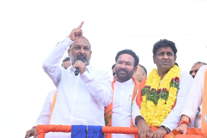 కాకతీయ, తెలంగాణ బ్యూరో : జూబ్లిహిల్స్ నియోజకవర్గం కిషన్ రెడ్డి అడ్డా అని కేంద్ర మంత్రి బండి సంజయ్ అన్నారు. బీజేపీని గెలిపిస్తే కిషన్ రెడ్డి కేంద్రం నుంచి మరిన్ని నిధులు తీసుకొచ్చి జూబ్లిహిల్స్ ను అభివృద్ధి చేస్తారని అన్నారు. కాంగ్రెస్, బీఆర్ఎస్ పార్టీలు దొందూ దొందే అని.. రెండు పార్టీలు కలిసి దోచుకుంటున్నాయని మండిపడ్డారు. ఈ రెండు పార్టీల పాలనలో జూబ్లిహిల్స్ ప్రజలకు ఒరిగిందేంలేదన్నారు. బీజేపీని ఓడించేందుకు దేశమంతా పోటీ చేస్తున్న మజ్లిస్ పార్టీ.. జూబ్లిహిల్స్ లో ఎందుకు పోటీ చేయడం లేదని సంజయ్ ప్రశ్నించారు. ఈ రెండు పార్టీలతో ఎంఐఎం చేసుకున్న బేరసారాలే నిదర్శనం అన్నారు. కాంగ్రెస్ గెలిస్తే బంజారాహిల్స్ పెద్దమ్మ తల్లి స్థలాన్ని మజ్లిస్ కు ధారాదత్తం చేస్తుందని ఆరోపించారు. కాంగ్రెస్ పై కోపంతో బీఆర్ఎస్ కు ఓట్లేస్తే ఇక అంతే సంగతులన్నారు. బీజేపీని గెలిపించి ఆ రెండు పార్టీలకు బుద్ది చెప్పాలని పిలుపునిచ్చారు.