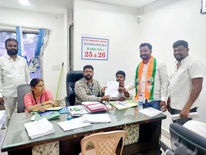 25వ డివిజన్లో బీజేపీ అభ్యర్థిగా కటకం లోకేష్ నామినేషన్