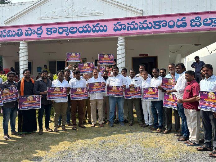 కాకతీయ, హనుమకొండ : హనుమకొండ బాలసముద్రలోని బీఆర్‌ఎస్ పార్టీ జిల్లా కార్యాలయంలో దీక్షా దివస్ కార్యక్రమాల భాగంగా ఈ నెల 5న జరగనున్న వ్యాసరచన పోటీల పోస్టర్‌ను బుధవారం మాజీ ప్రభుత్వ చీఫ్ విప్‌, బీఆర్‌ఎస్ హనుమకొండ జిల్లా అధ్యక్షులు దాస్యం వినయ్ భాస్కర్ ఆవిష్కరించారు. ఈ కార్యక్రమంలో బీఆర్ఎస్వీ నేతలు పాల్గొన్నారు. ఈ సందర్భంగా మాట్లాడిన దాస్యం వినయ్ భాస్కర్ కేసీఆర్ తెలంగాణ ఉద్యమానికి నడిచే అక్షరం అని పేర్కొన్నారు. 60 ఏళ్ల తెలంగాణ ప్రజల గోసను తీర్చిన ఉద్యమ నేత కేసీఆర్‌ 14 ఏళ్ల పాటు స్వరాష్ట్ర సాధనకై చేసిన పోరాటం, అనంతరం 10 ఏళ్ల పాటు ముఖ్యమంత్రిగా అమలు చేసిన అభివృద్ధి కార్యక్రమాలు, సంక్షేమ పథకాల గురించి నేటి తరానికి తెలుసుకోవాల్సిన అవసరం ఉందన్నారు. కేసీఆర్‌ పట్టుదల, కష్టసాధన, లక్ష్య సాధన విద్యార్థులకు చదువుల్లో స్ఫూర్తినిస్తుందని తెలిపారు. వ్యాసరచన పోటీల ద్వారా విద్యార్థుల్లో జ్ఞానం, పోటీ తత్వం పెరుగుతుందని అభిప్రాయపడ్డారు. దీక్షా దివస్‌లో భాగంగా ఈ నెల 5న శుక్రవారం ప్రత్యేకంగా తెలంగాణ ఉద్యమం, కేసీఆర్ ఆమరణ నిరాహార దీక్ష అంశంపై ఇంటర్‌, డిగ్రీ, పీజీ విద్యార్థుల కోసం బీఆర్ఎస్వీ ఆధ్వర్యంలో వ్యాసరచన పోటీలను నిర్వహించనున్నట్టు తెలిపారు. ఈ కార్యక్రమంలో కార్పొరేటర్ సంకు నర్సింగరావు, మాజీ కార్పొరేటర్ జోరిక రమేష్, కుసుమ లక్ష్మీనారాయణ, పులి రజినీకాంత్, వెంకన్న, జానకిరాములు, నాయీముద్దీన్, మనోజ్ కుమార్, సదాంత్, ఖలీల్, శ్రీధర్, శ్రీకాంతాచారి, చందర్, పుల్లయ్య, రమేష్, బుద్దె వెంకన్న, హరినాథ్, ప్రభాకర్, కొండ్ర శంకర్, రాజు, బీఆర్ఎస్వీ నాయకులు బైరపాక ప్రశాంత్, సూర్యకిరణ్ వర్మ, గండ్రకోట రాకేష్ యాదవ్, వీరాస్వామి, పస్తం అనిల్, స్నేహిత్, రాజేష్, రంజిత్ తదితరులు పాల్గొన్నారు.